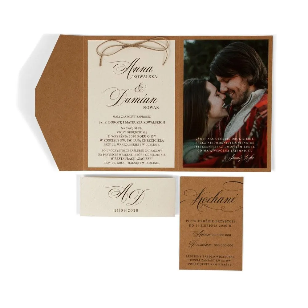 Rustykalne zaproszenia ślubne to przede wszystkim: