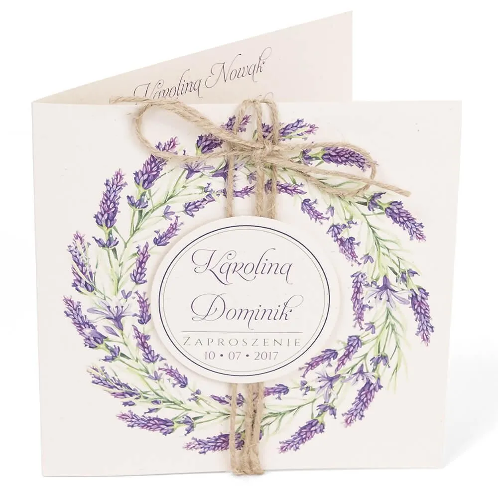 Lawendowe zaproszenie ślubne jest pełne delikatności, romantyzmu i naturalnego urok